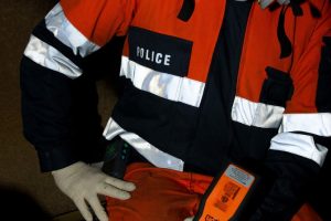 Luxembourg Police Crime Scene Division or Section Police Technique is using an Ion Science Tiger volatile organic compound (VOC) detector to identify potential fire accelerating substances during arson investigation.