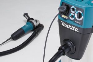 The latest Makita M-class dust extractor can be integrated with many Makita power tools to greatly reduce the health risks of dust extraction in the workplace.
