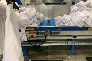 A LEADING workwear company has been fined £400,000 after an employee had the skin ripped off the palm of her left hand.