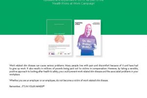 This is the message from hand protection specialist Polyco who has joined the BSIF’s ‘It’s in your Hands” campaign which aims to improve skin care in industrial and commercial organisations. The 2006 campaign has been updated and expanded in 2013 to include latest statistics on incidence of skin disease, advice on avoiding the risk of skin cancer and work related dermatitis, as well as skin care considerations by work area.