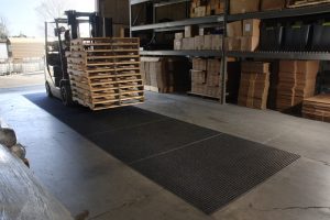 As forklift trucks go in and out of facilities to transport goods, the wheels allow dirt and water to migrate into your facility. This can create a dangerous environment and increase the likelihood of serious injuries. Waterhog Forklift Mats can prevent these problems.