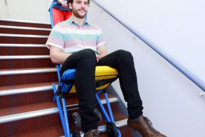 Evacuation chairs manufactured and supplied by Evac+Chair International are designed to accommodate mobility impaired people, allowing them to descend a staircase in an emergency situation without the need of great physical strength or lifting.