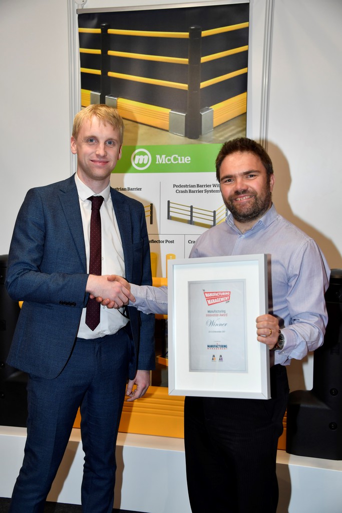 McCue’s new FlexCore Guardrail has won an award for innovation at UK Expo, The Manufacturing Management Show.